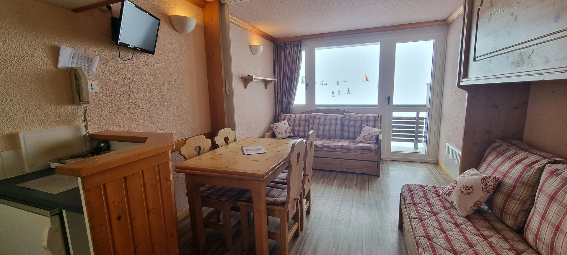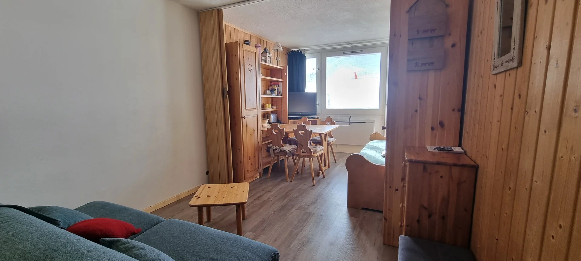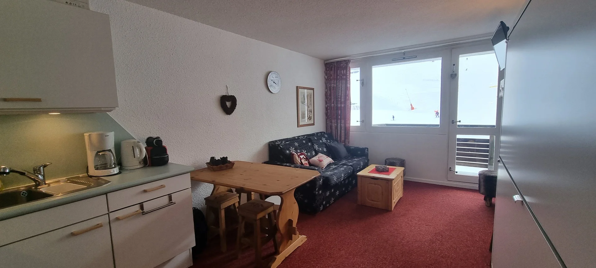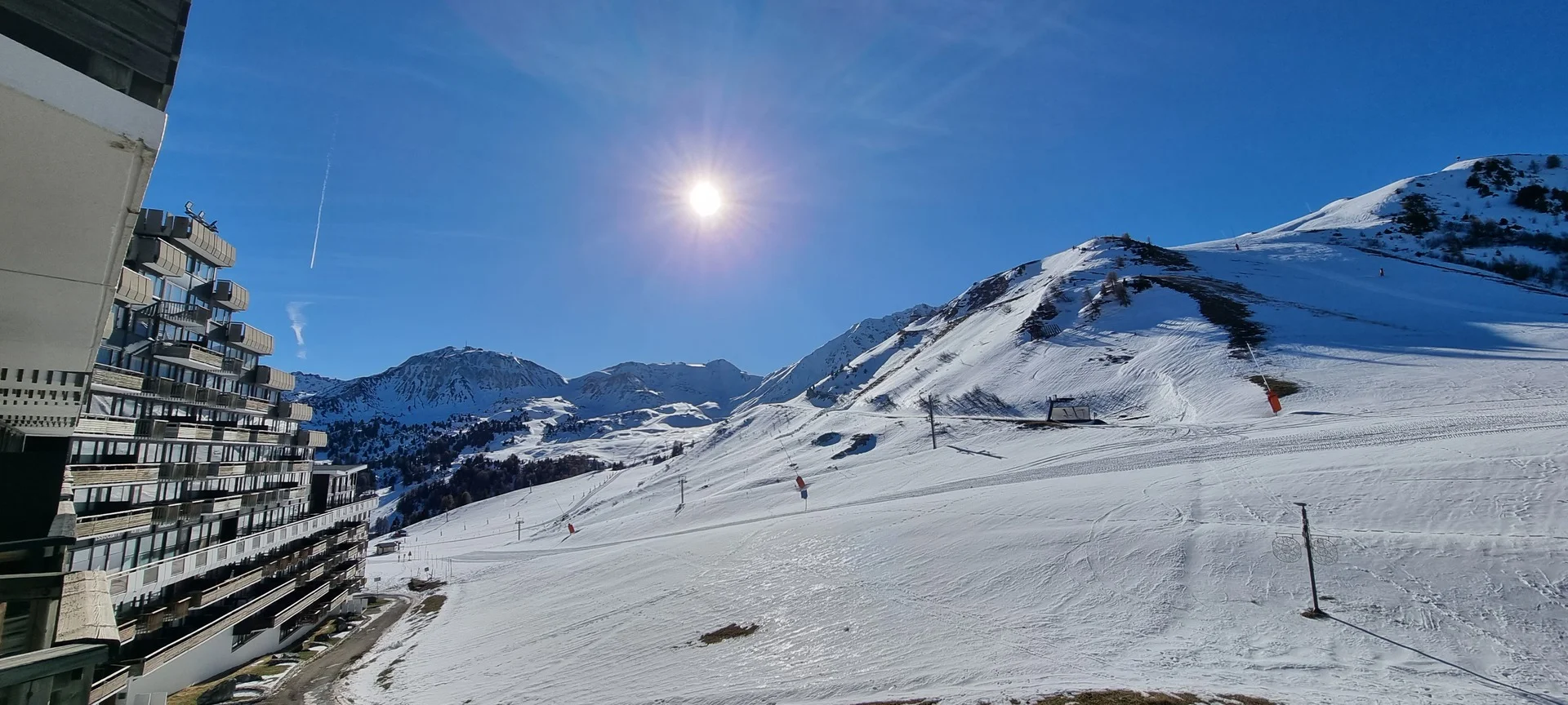 Ingangsdeur AIME 2000, verdieping J, kamernummer 37. Het studio heeft een balkon aan de zuidzijde. Parkeerplaats beschikbaar (betaald). Directe ligging aan de pistes.