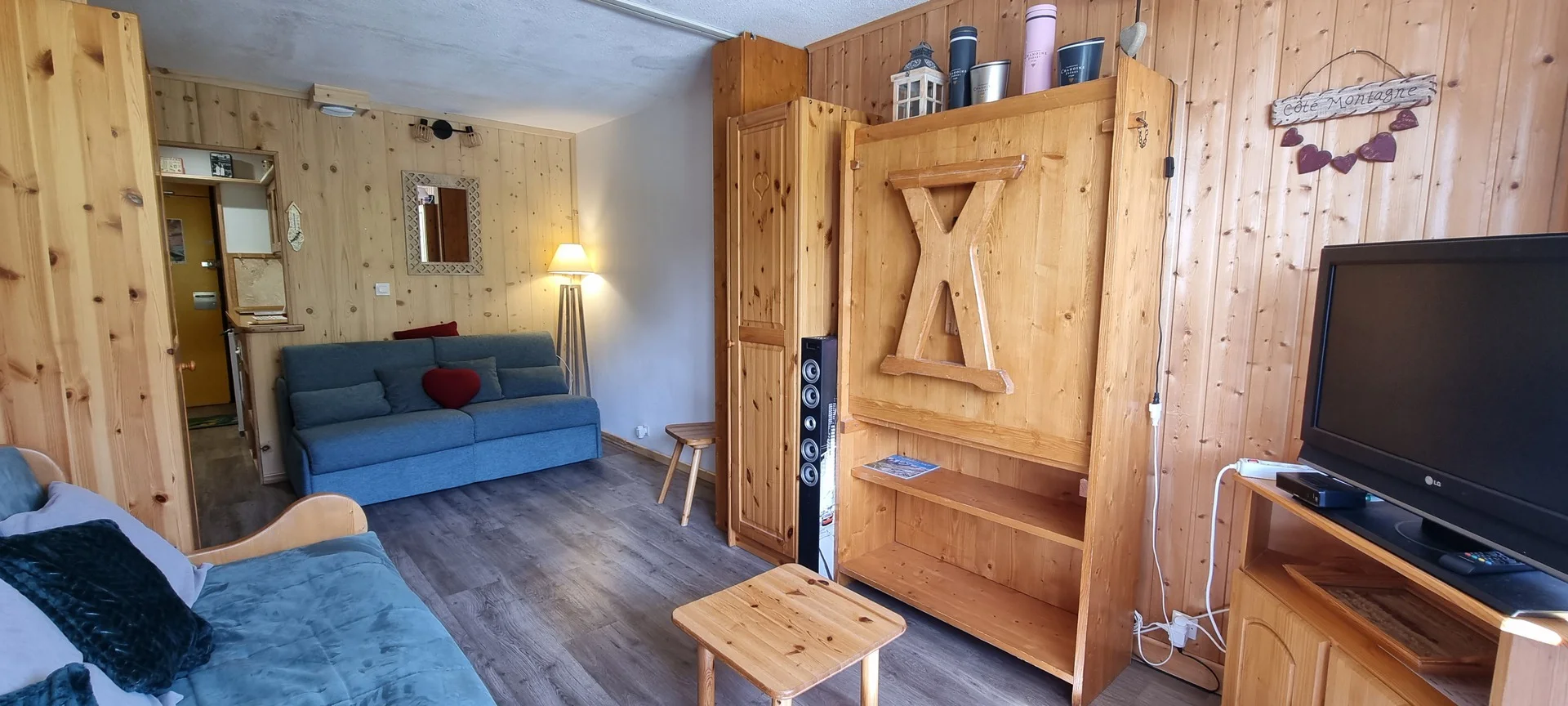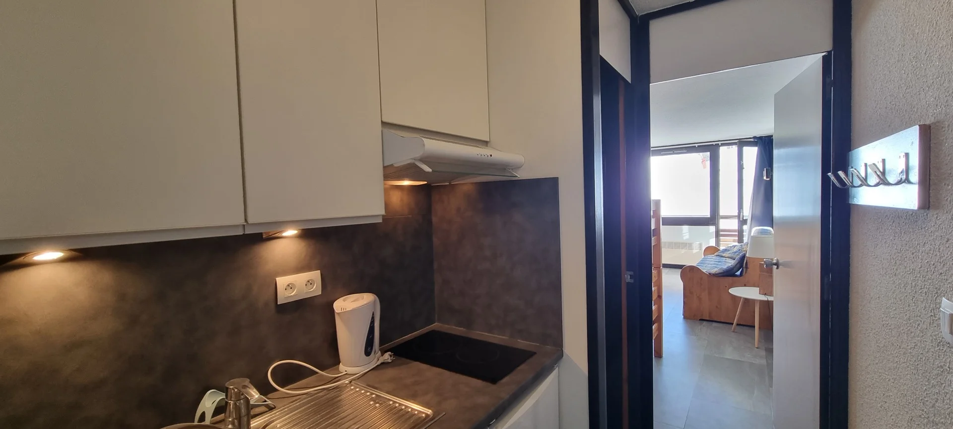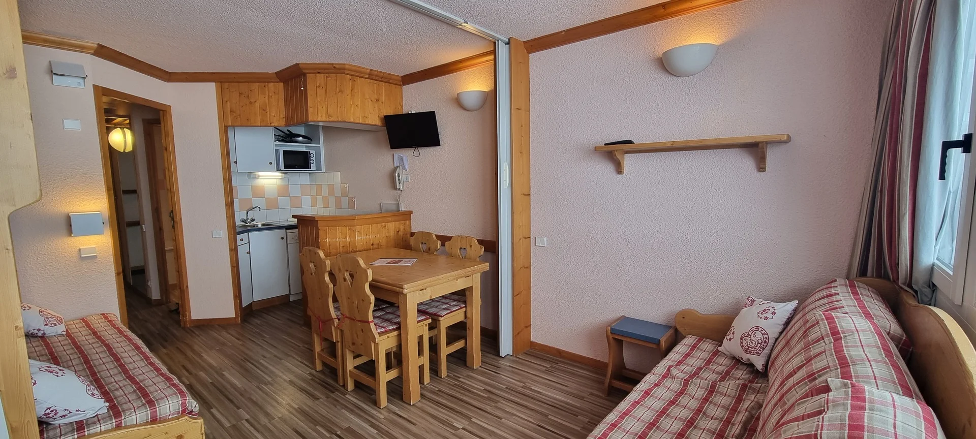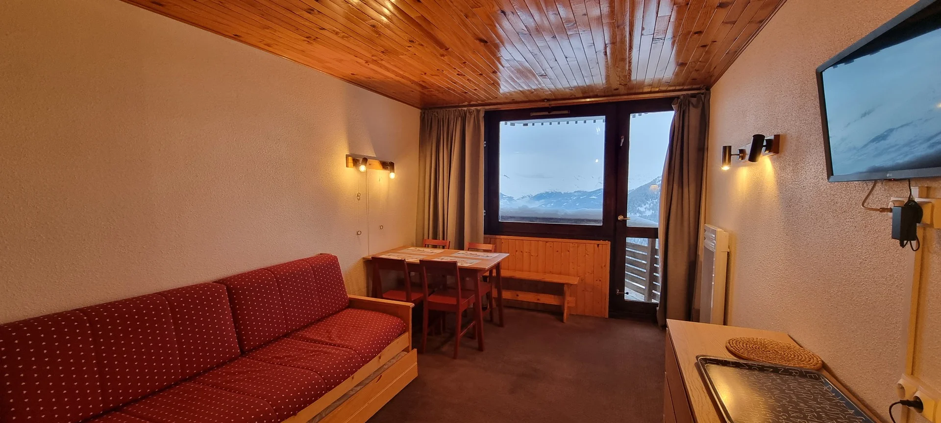 Ingangsdeur AIME 2000, verdieping J, kamernummer 37. Het studio heeft een balkon aan de zuidzijde. Parkeerplaats beschikbaar (betaald). Directe ligging aan de pistes.