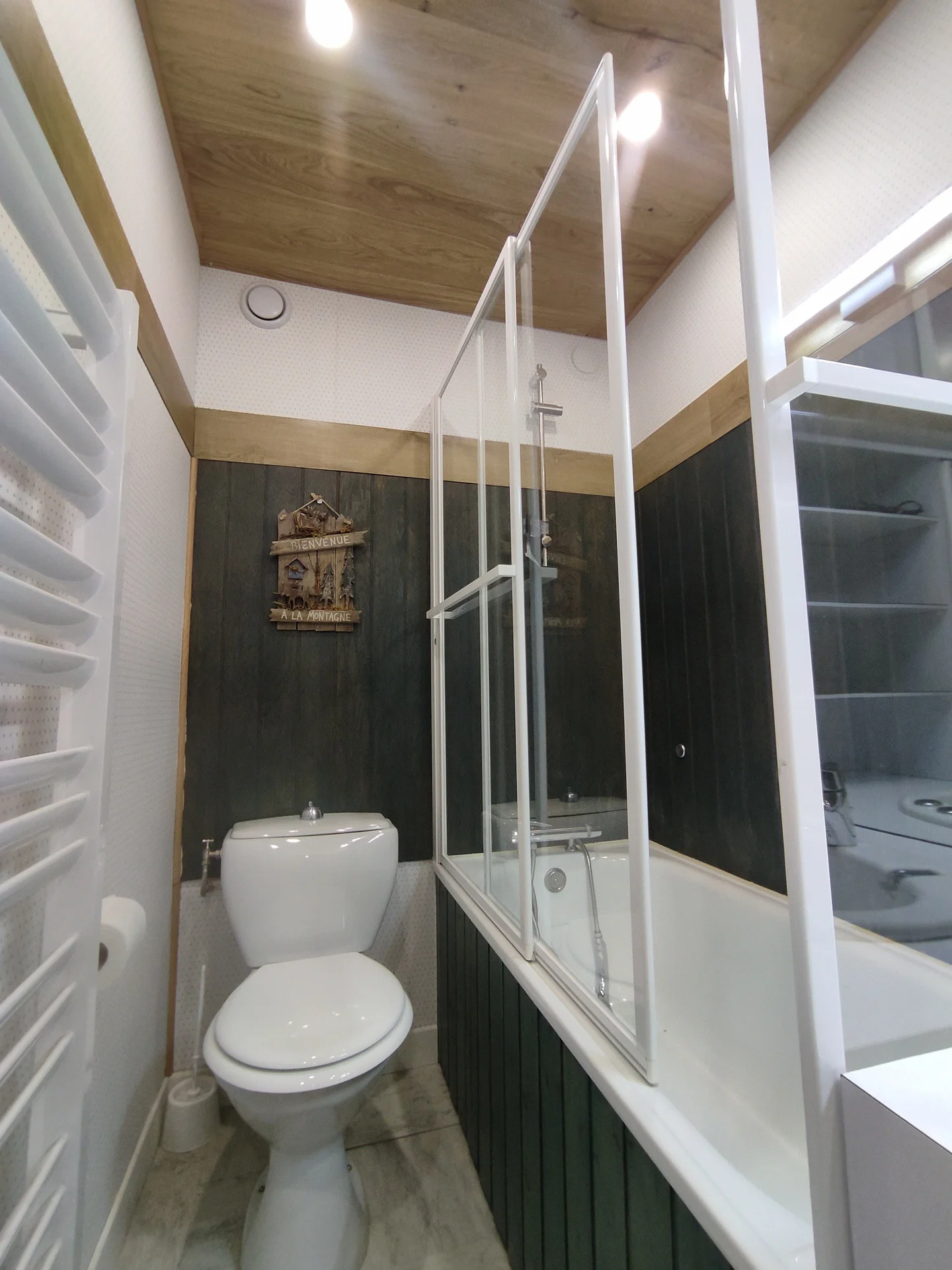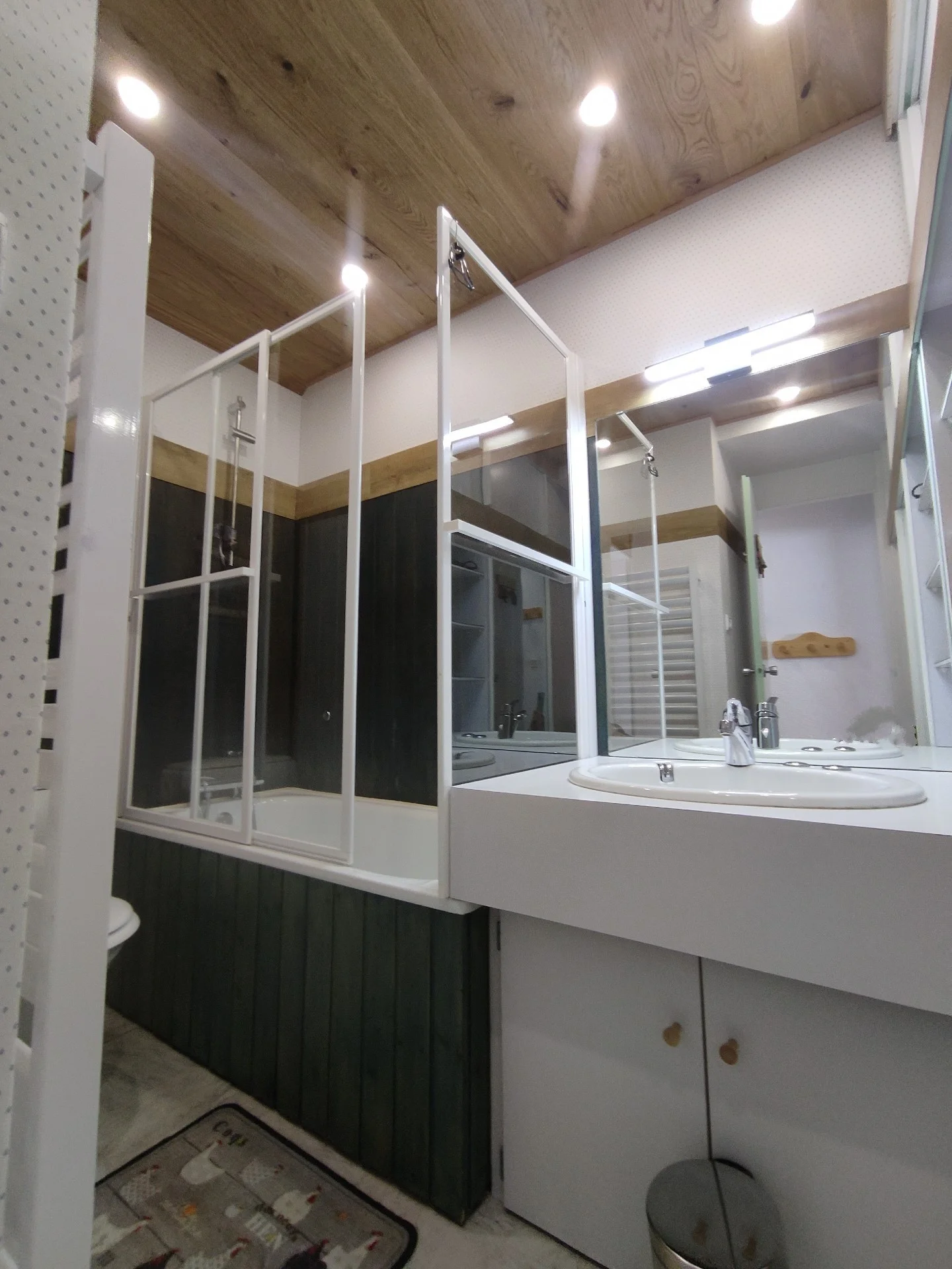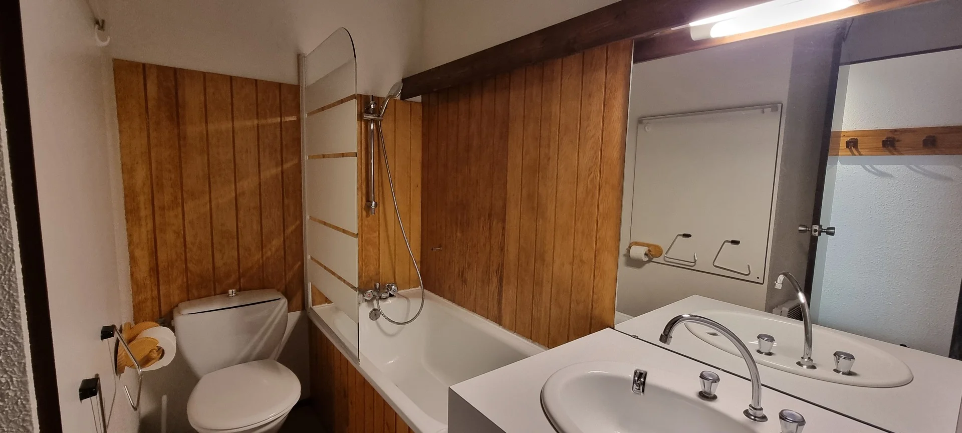 Badkamer met ligbad en apart toilet.