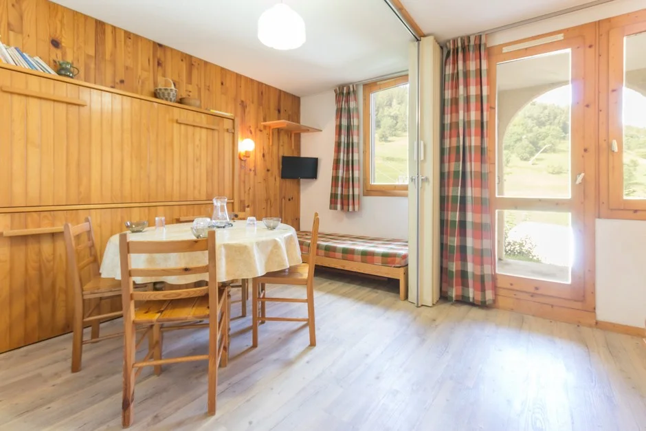 Het studio bevindt zich op verdieping -1. Zuidgericht balkon of terras waar je kunt genieten. Gratis parkeerplaats beschikbaar. Directe toegang tot de skistallen voor skiopslag. Zeer dicht bij de pistes.