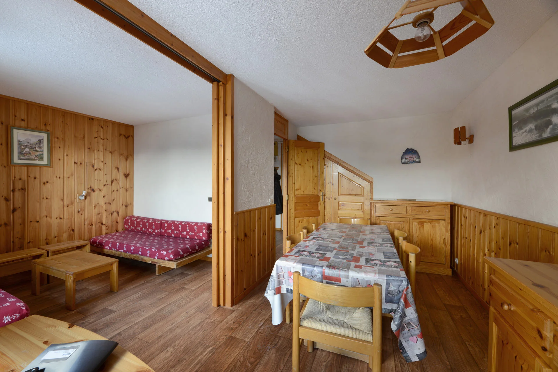 Mezzanine in woonkamer: 2 eenpersoonsbedden (80x190 cm)