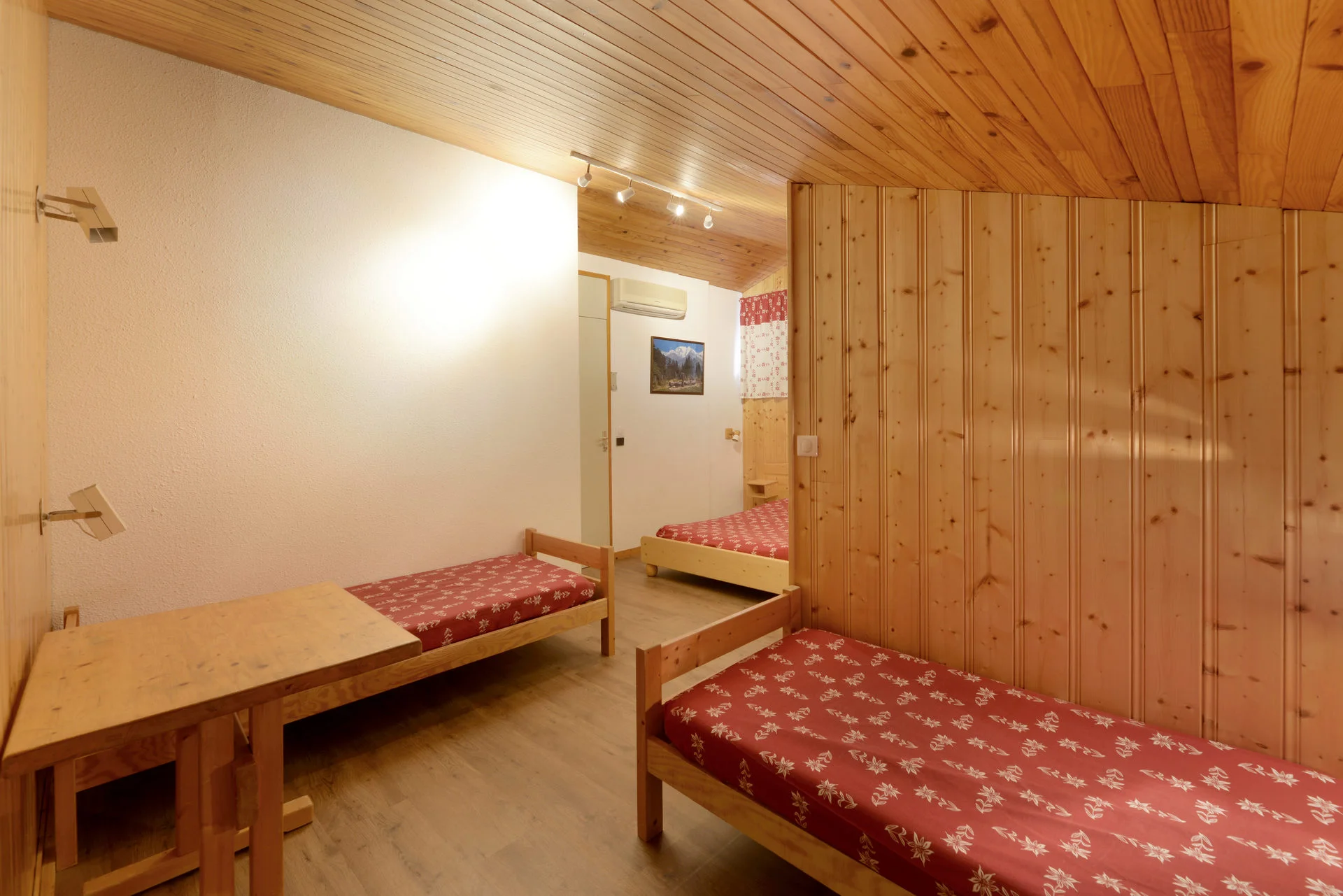 Slaapkamer 1: 1 tweepersoonsbed (140x190 cm) + 2 eenpersoonsbedden (80x190 cm)