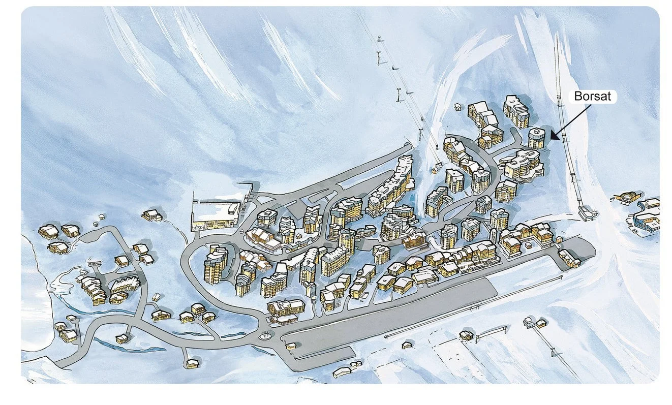 Het studio bevindt zich in residentieel Borsat op de 4e verdieping (bereikbaar met lift), aan de ingang van de residentie. Het balkon kijkt uit op het zuiden. Direct bij de pisten.