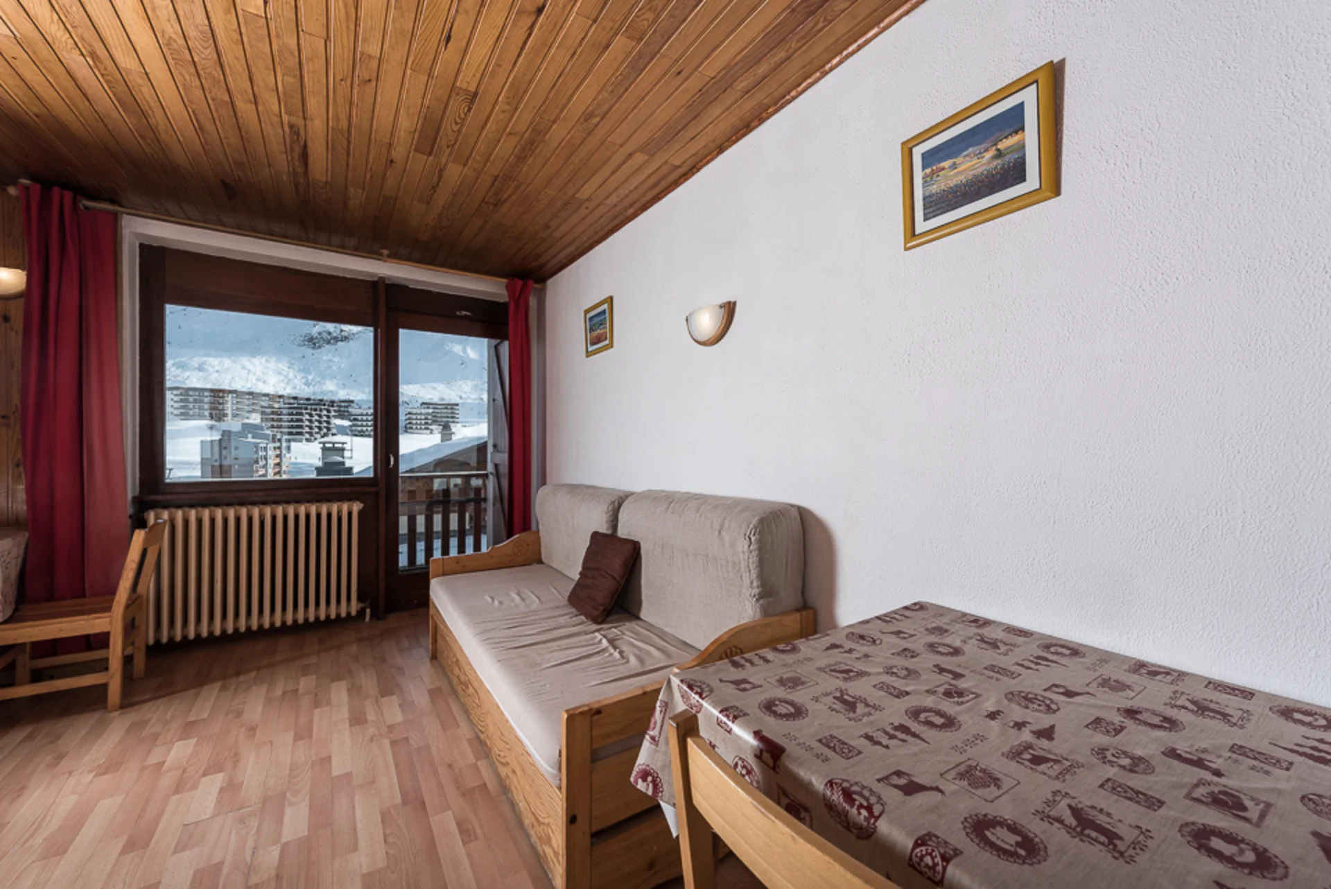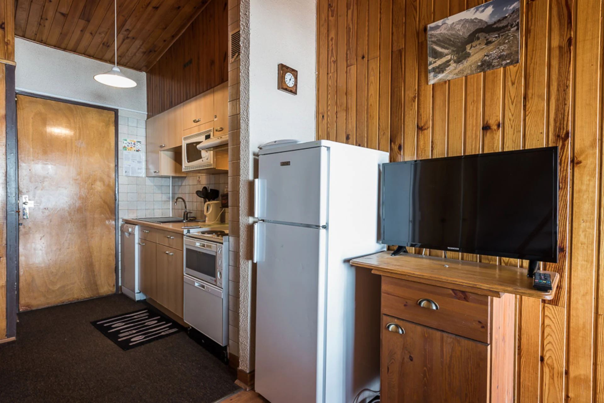 Het appartement ligt op de 4e etage in residentieel complex Les Chaudes Almes en heeft een balkon met oriëntatie oost. De ligging biedt gemakkelijke toegang tot de skipistes.