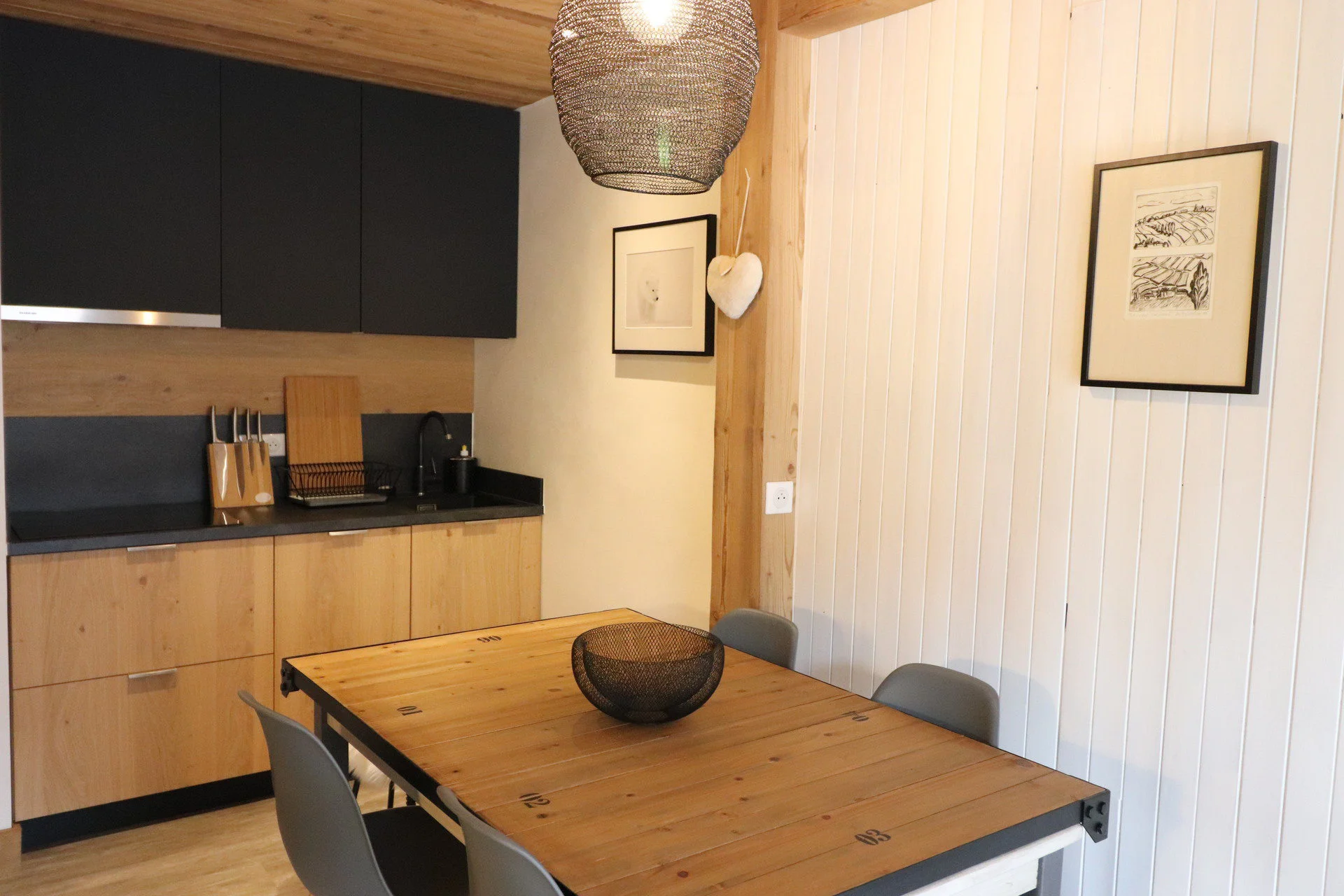 De keuken is voorzien van een inductiekookplaat (3 pitten), oven, magnetron, koelkast, vaatwasser, waterkoker, Nespresso-apparaat, koffiezetapparaat, broodrooster, staafmixer en afzuigkap.