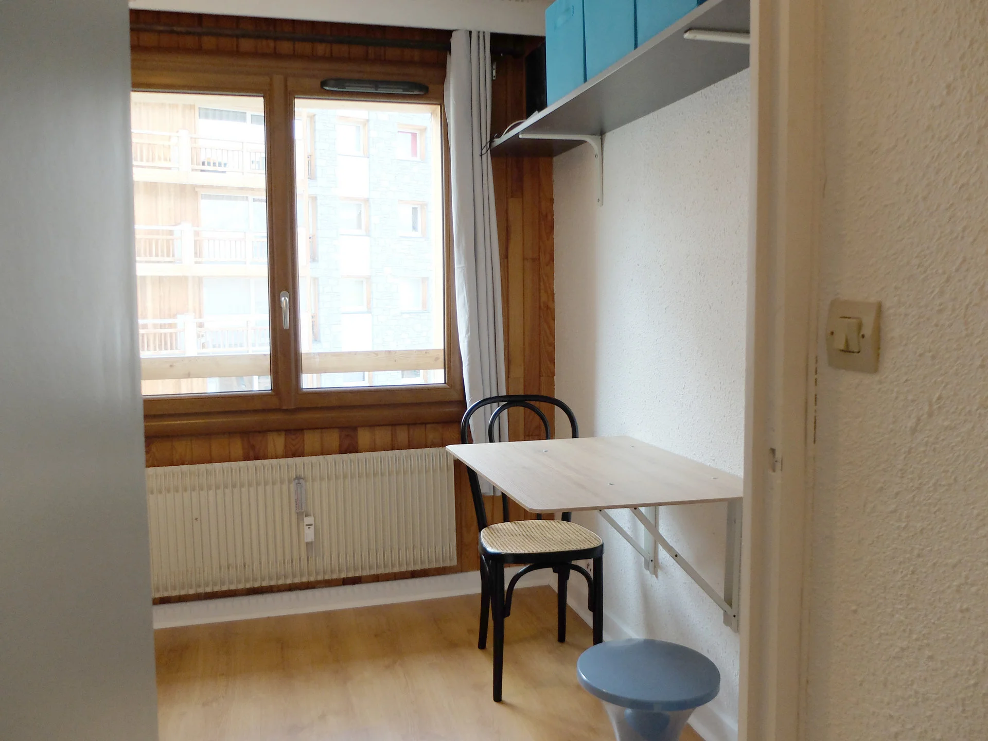 De woonkamer is voorzien van een comfortabele canapé clic clac, een lage tafel, een etagère en verschillende zitplaatsen. Er is een TV met afstandsbediening. Het balkon/terras biedt een aangename plek om buiten te verblijven.