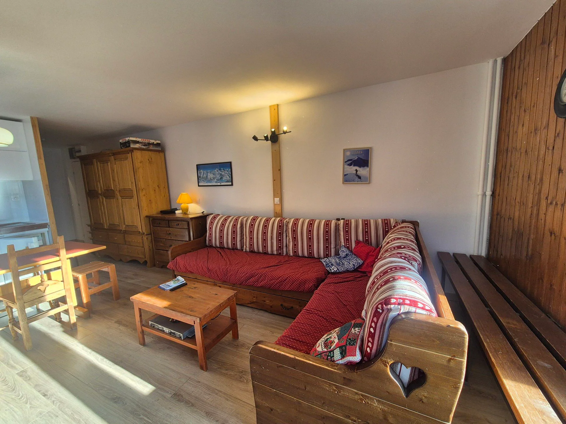 De gezellige woonkamer beschikt over een comfortabele zithoek met een slaapbank en tien kussens. Er is een televisie met dvd-speler en een selectie van honderd dvd's. De woonkamer biedt een fijne plek om 's avonds samen door te brengen. Bordspellen zoals Stratego, Wie wil er miljoenair worden?, Scrabble Junior en Puissance 4 zijn aanwezig.