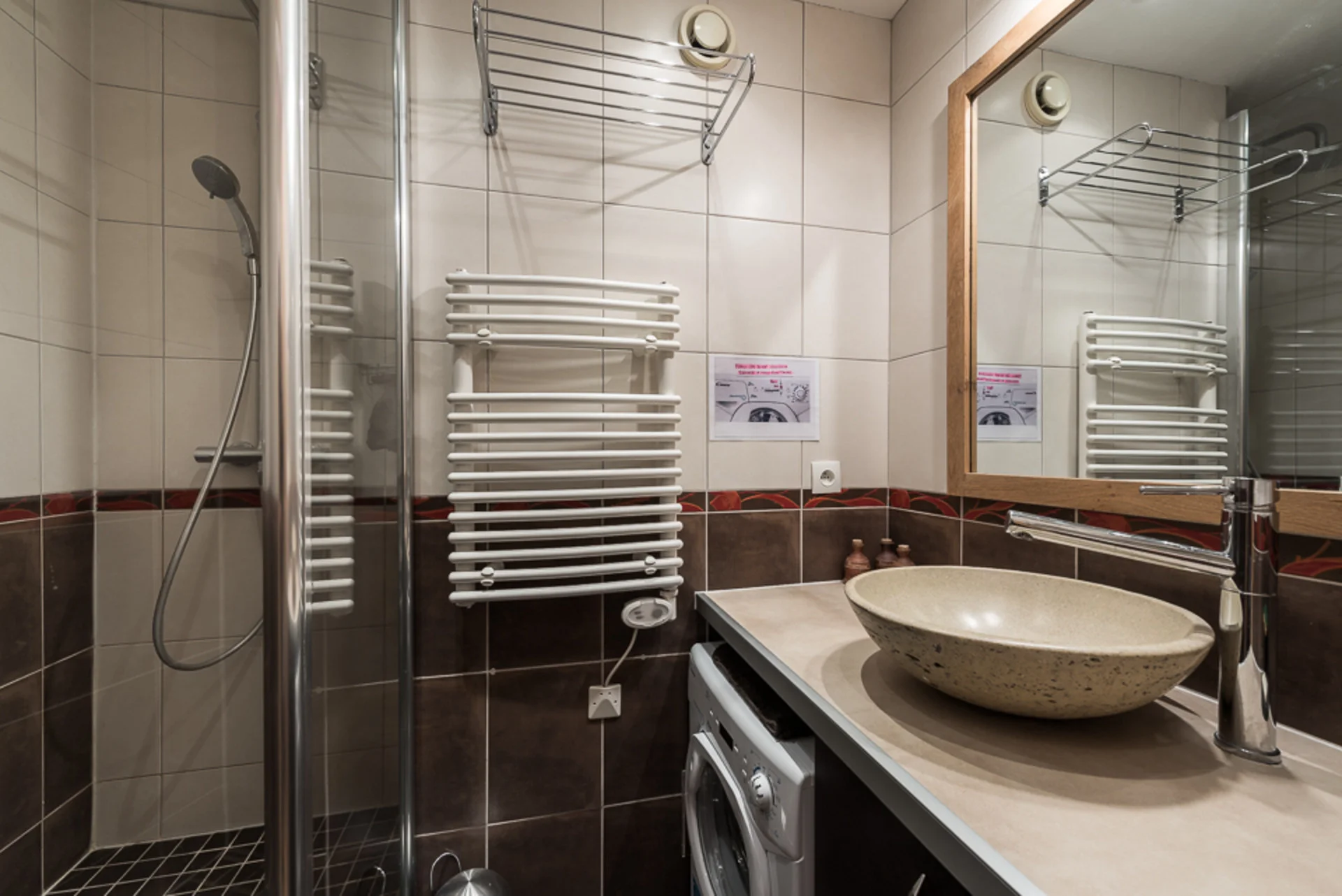 Het appartement beschikt over een badkamer met douche en radiator voor handdoeken. Daarnaast is er een apart toilet.