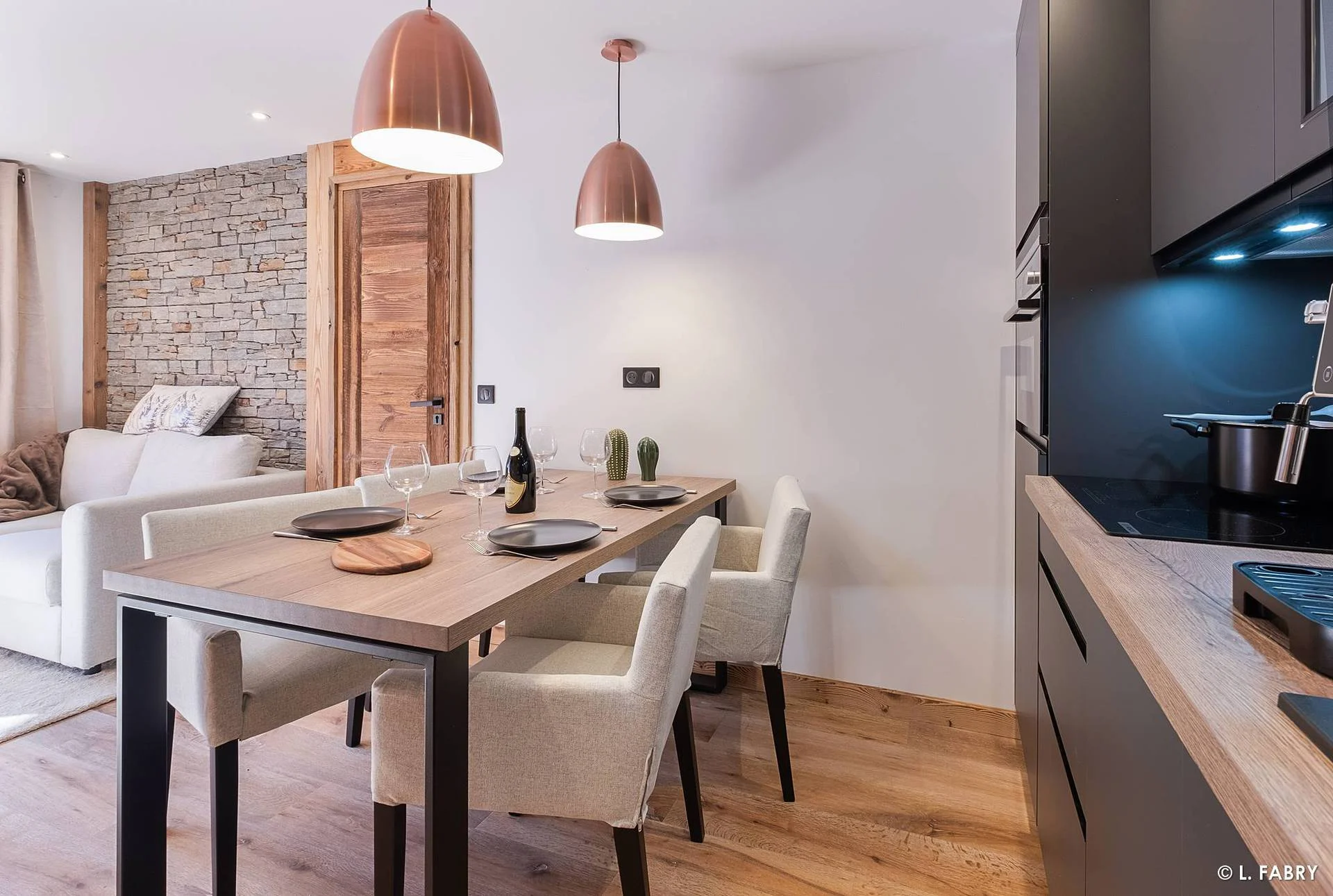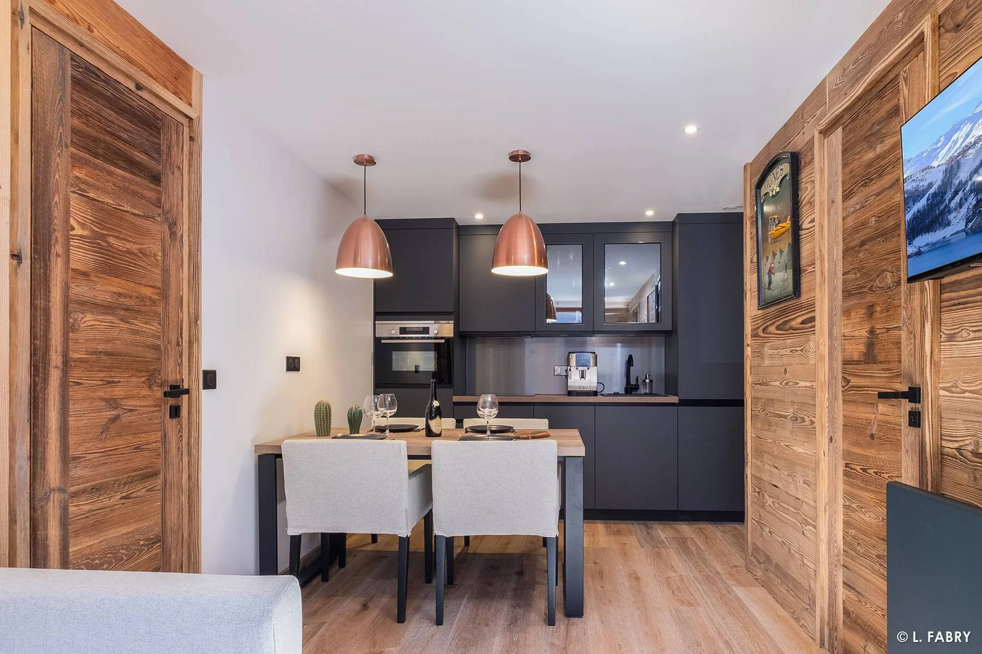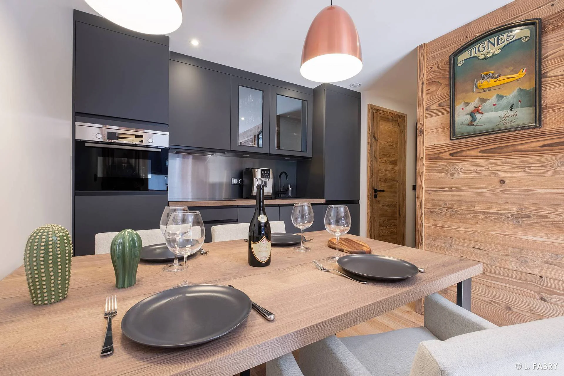 De keuken is ingericht met een inductiekookplaat (2 pitten), koelkast, vaatwasser, magnetron, oven, broodrooster, waterkoker, Senseo-apparaat, elektrisch fondue-apparaat en heteluchtfriteuse.