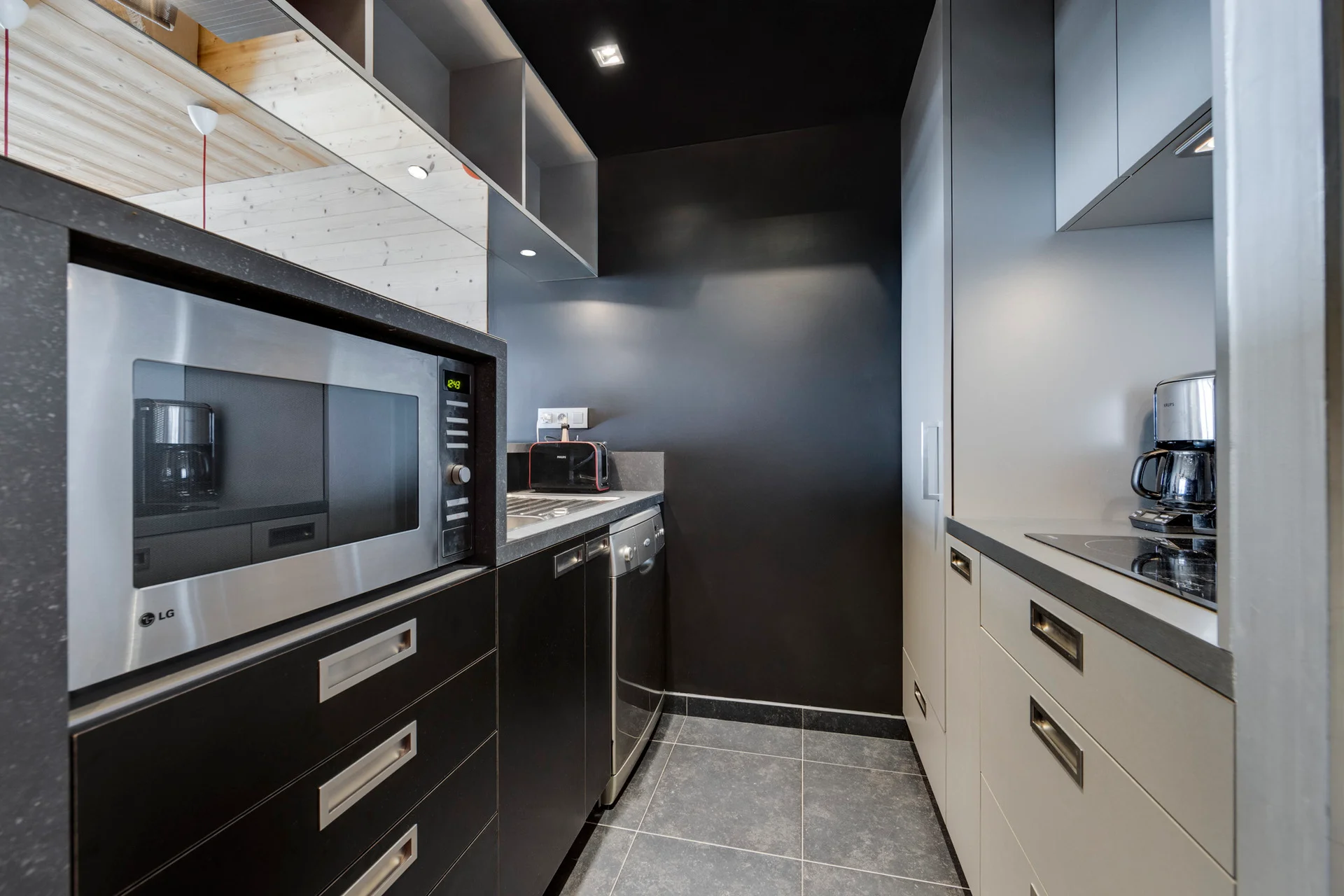 Volledig uitgerust met inductiekookplaat (4 pitten), vaatwasser, oven met magnetron, koelkast, frigo, broodrooster, waterkoker, Senseo-apparaat, koffiezetapparaat, crêpepan, raclette- en grill-apparaat, fondue-set en sinaasappelpers.
