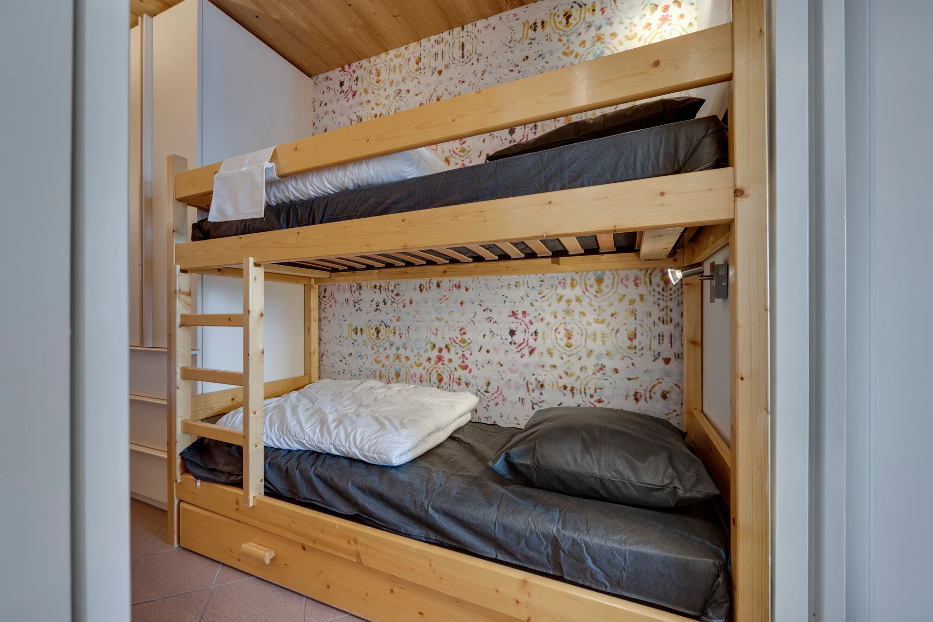 - Slaapkamer: 1 tweepersoonsbed (140x190 cm) en 1 stapelbed (2 slaapplaatsen)