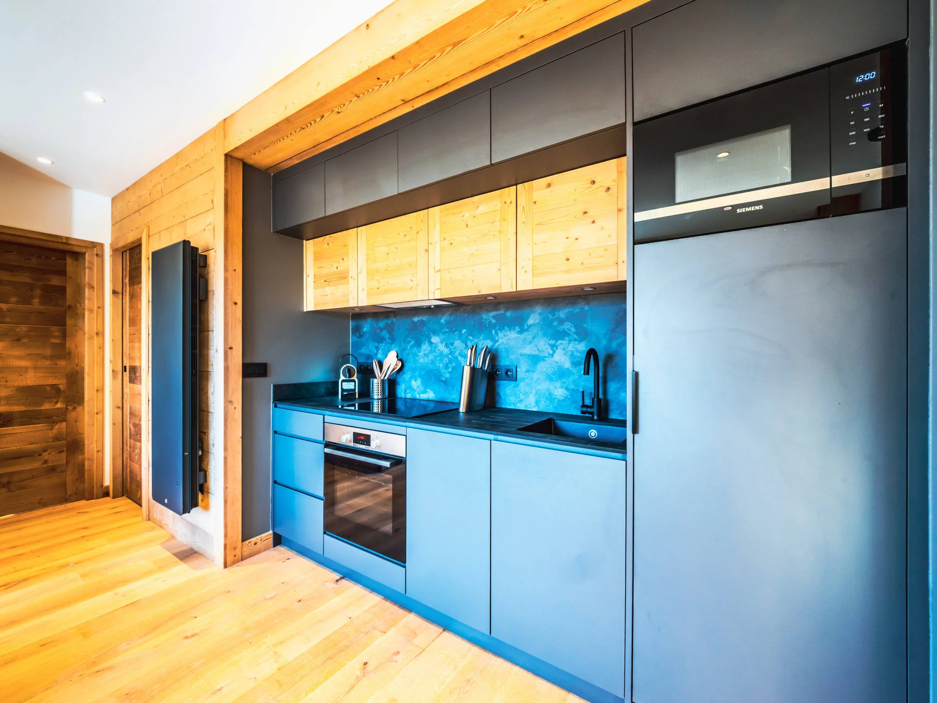 Het appartement is volledig ingericht met inductiekookplaat (3 pitten), magnetron, koelkast, oven, vaatwasser, Nespresso-apparaat, koffiezetapparaat, waterkoker en broodrooster. Aanwezig: servies, bestek, pannen, fondue-set, slacentrifuge, sinaasappelpers, flessenopener, schaar en overig keukengereedschap.