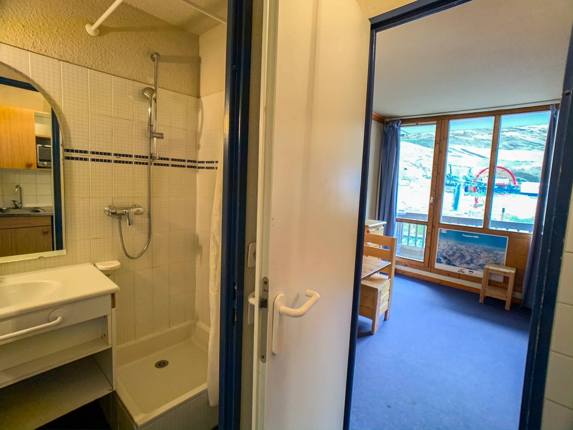 Het studio bevindt zich op de 5e verdieping (via lift bereikbaar) aan de zuidkant van de residentie. Er is een balkon/terras. Dit verblijf ligt aan de pistes en zeer dicht bij de skiliften.