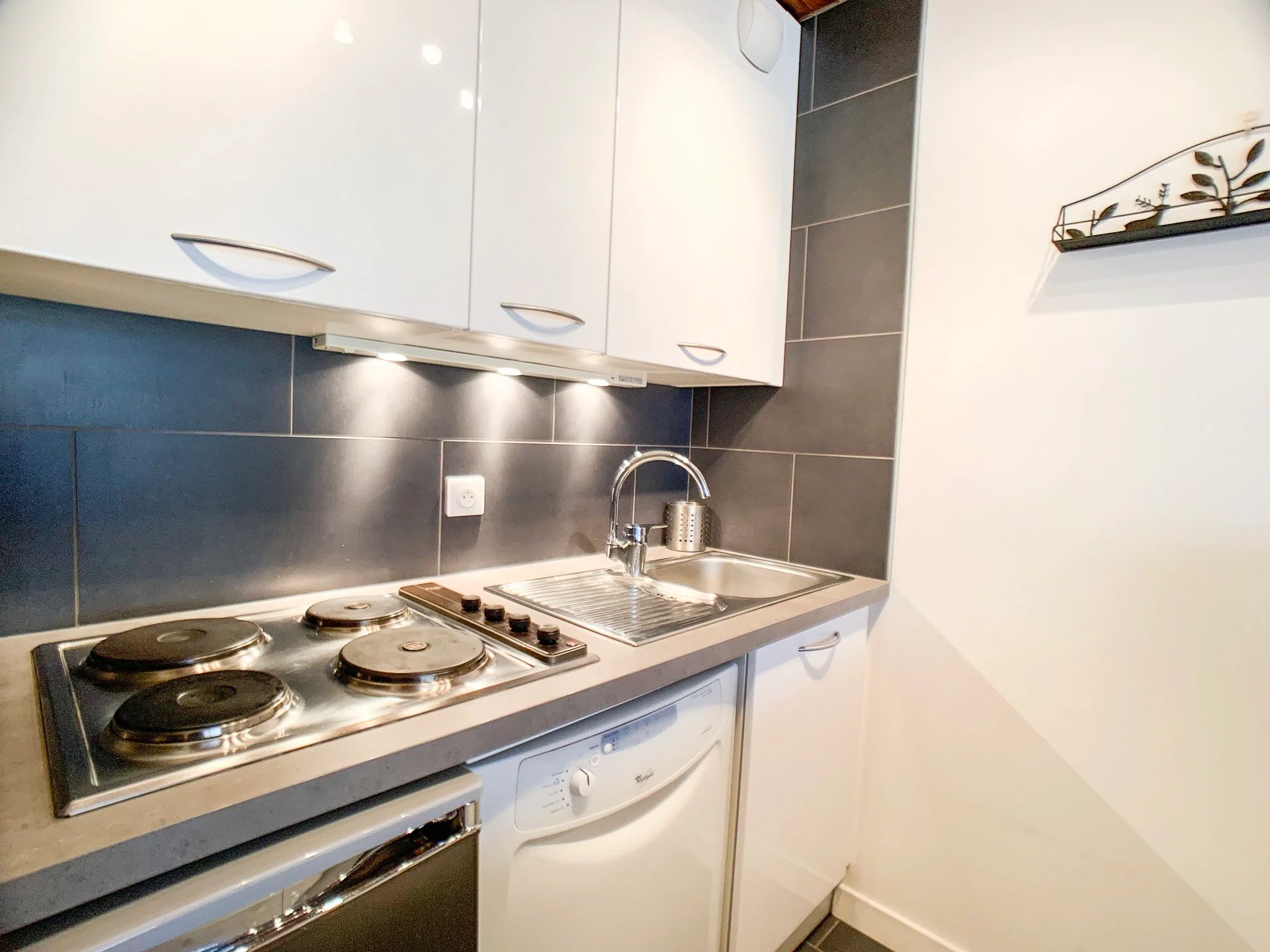 Dit is een comfortabele studio met twee aparte kamers. Het appartement beschikt over een slaapkamer met een tweepersoonsbed, een cabine (kleine tweede kamer) met twee eenpersoonsbedden, een woonkamer met zithoek, een complete keuken en een badkamer met apart toilet.